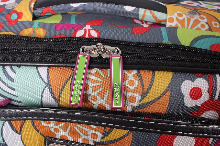 Designed for fashion forward travelers, the Lily Bloom Bliss 4-piece luggage set is fabulous! Made of polyester, the Lily Bloom Bliss 4-piece luggage set is water and dirt resistant. Light in weight, the Lily Bloom Bliss 4-piece luggage is designer lined for packing unpacking ease. With four spinner wheels, you can easily glide the Lily Bloom Bliss 4-piece luggage set along in any direction. The carry on size with the tote can conveniently be rolled down the aisle of planes and trains. The tote sits securely on top of the carry on and rolls along. Need more room and just expand the luggage so it is like getting two bags in one! We include FREE shipping and FREE leather tags monogrammed for you with your own initials for quick identification of your fabulous Lily Bloom Bliss 4-piece luggage set wherever you journey!